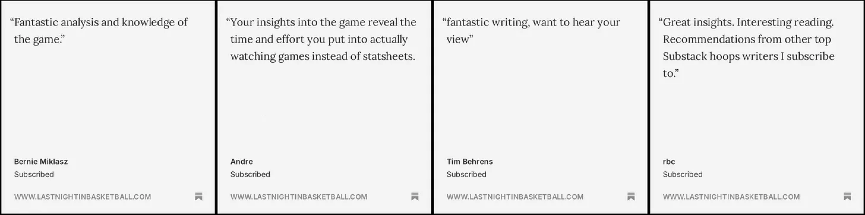 But before we get to that, testimonials from a few current Last Night, In Basketballers: