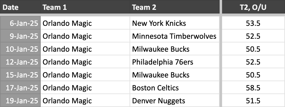 In a seven-game span during January, the Magic face seven consecutive teams whose over-under is above 50 wins: Knicks, Wolves, Bucks, Sixers, Bucks, Celtics, Nuggets. That is R-O-U-G-H stuff.