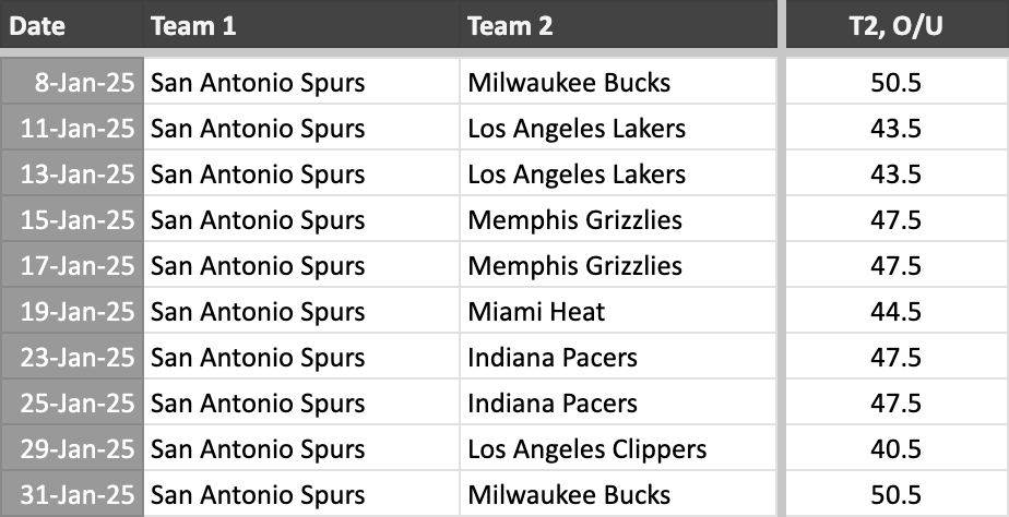 If you click through the table above and ask me (via email or Twitter) about a specific stretch for a certain team, I’d be happy to share similar screenshots to provide the dates and opponents that comprise that part of the schedule.